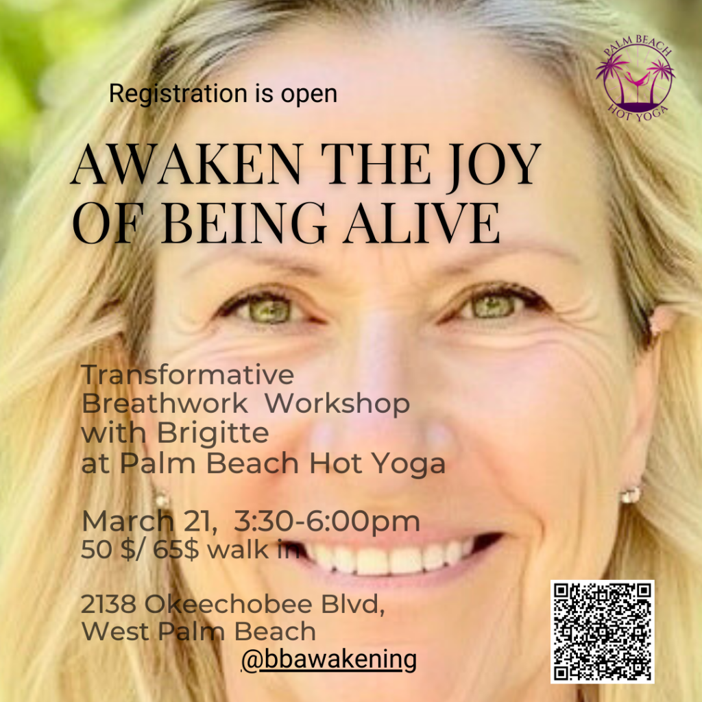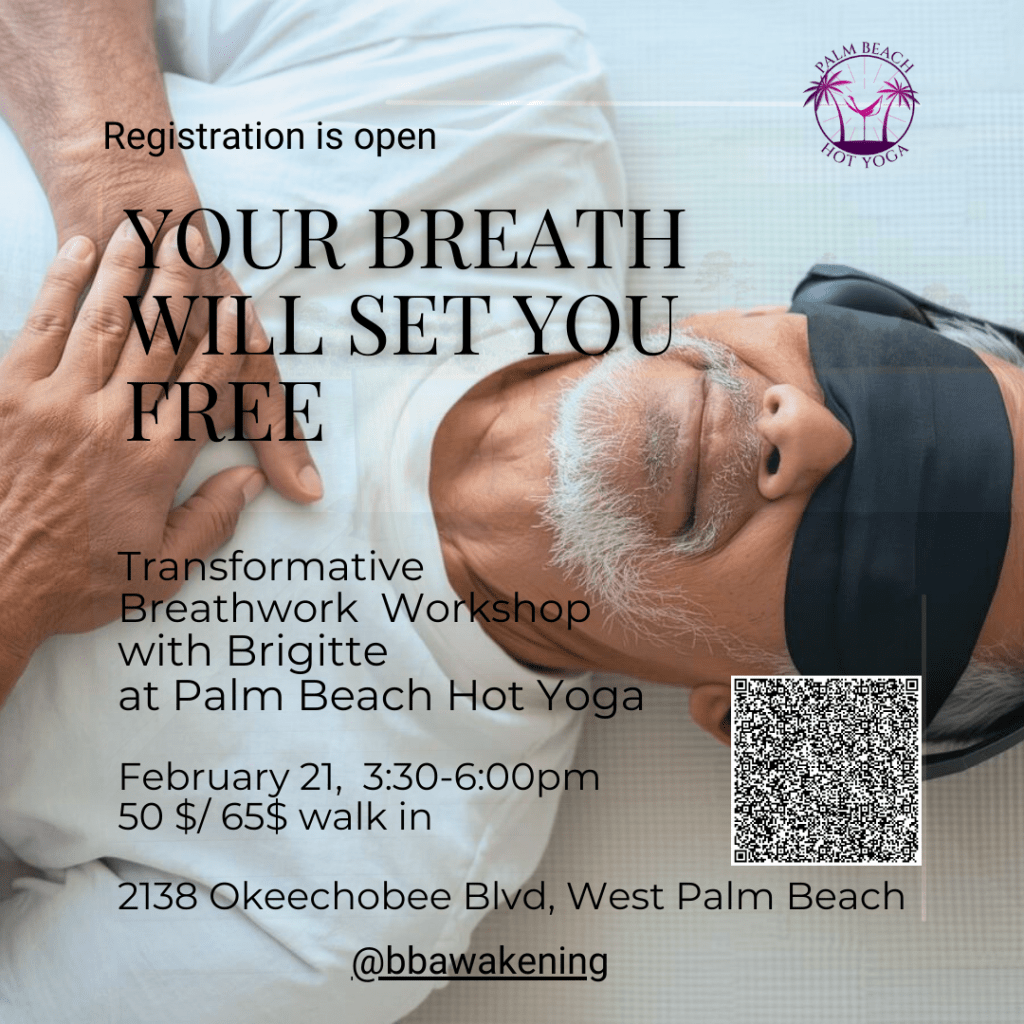 Once registered, contact me so I can send you a questionary to make the best of your journey: bruyez@me.com , with subject: Breathwork session-Palm Beach Hot Yoga.